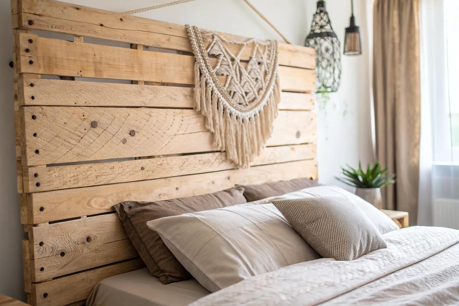 Layer different thicknesses of pallet wood to create a dimensional effect. If you prefer a softer look, you can also explore DIY upholstered headboards. I experimented with this wood technique, and the depth it adds is amazing.