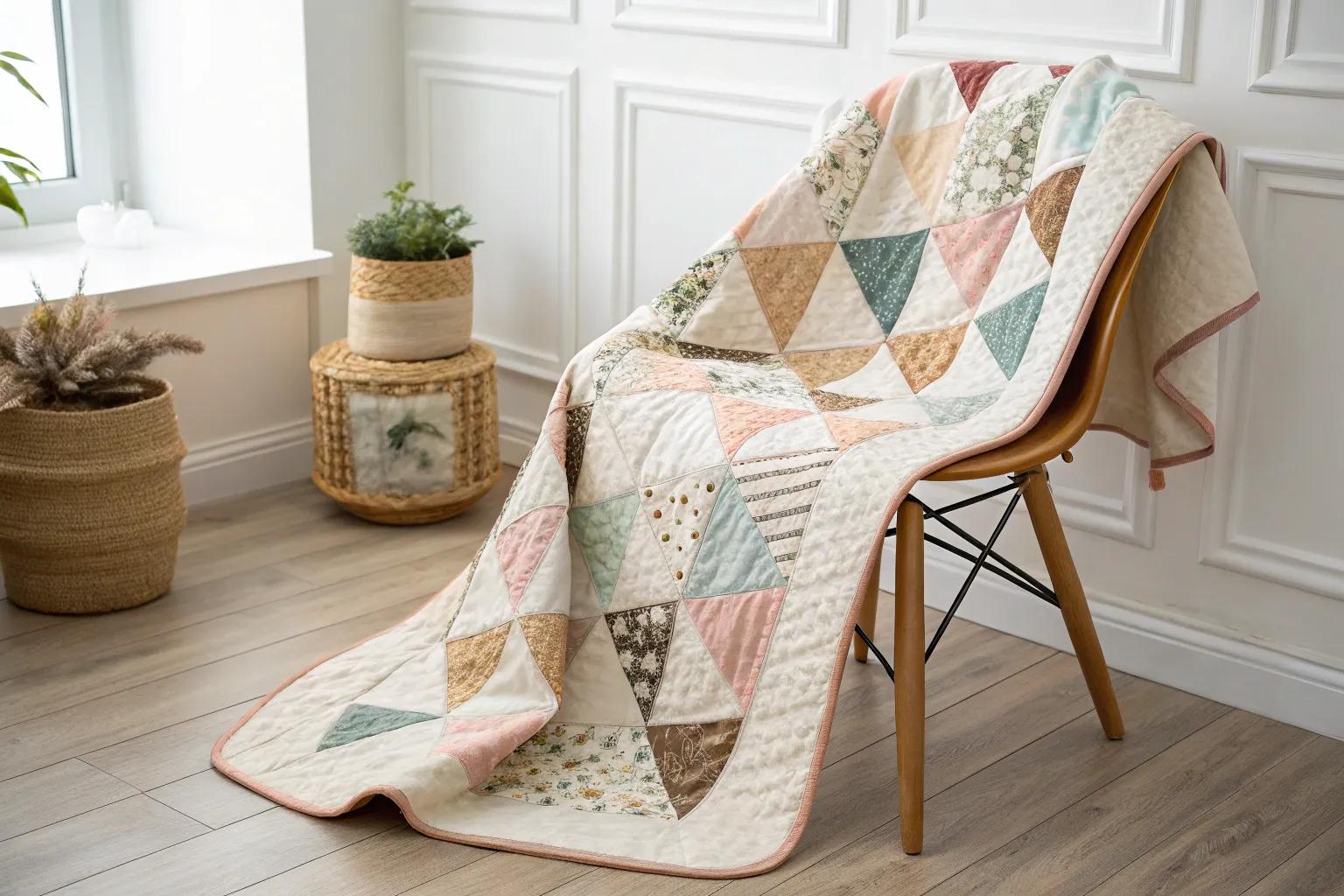 Triangles add a dynamic twist to any quilt, creating a sense of movement. For a great starting point, explore these layer cake quilt pattern ideas to mix and match different fabrics for a lively and energetic quilt that catches the eye.