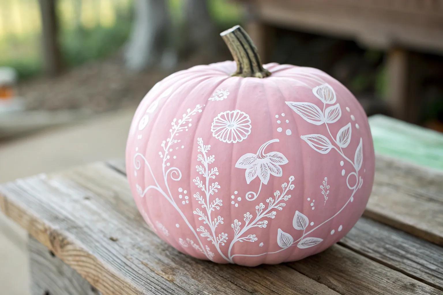 Create an ombre effect by blending different shades of pink on your pumpkin. Starting from a soft blush at the top to a rich magenta at the bottom, this technique always wows my friends. It’s like having a little piece of art on your porch!