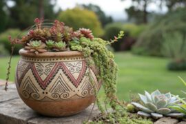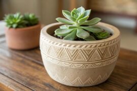 Explore tribal patterns for a bold and cultural look. I use geometric shapes and earthy tones to create striking clay pot designs that stand out. These ceramics add a touch of global flair to my home.