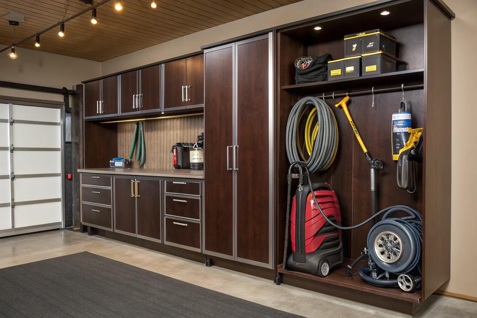 Transform your garage into a masterpiece of organization with a dedicated storage area for your pressure washer.