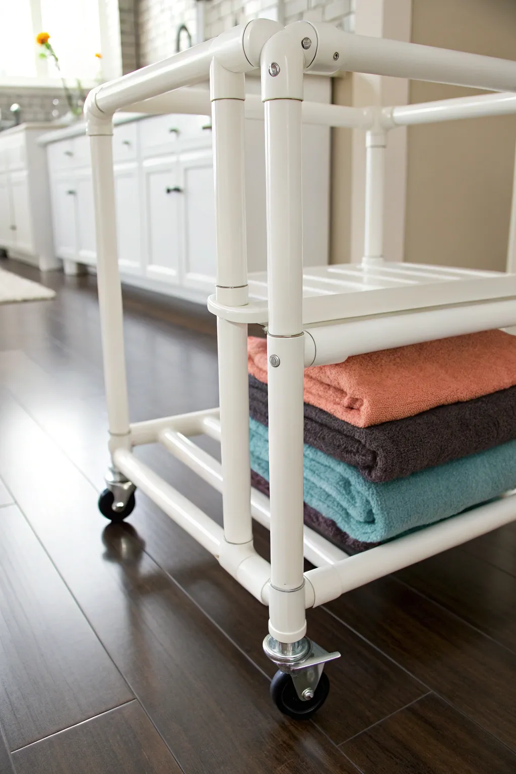 Build a rolling laundry cart using PVC pipes and wheels for easy transport. Laundry day is now a breeze in my household.