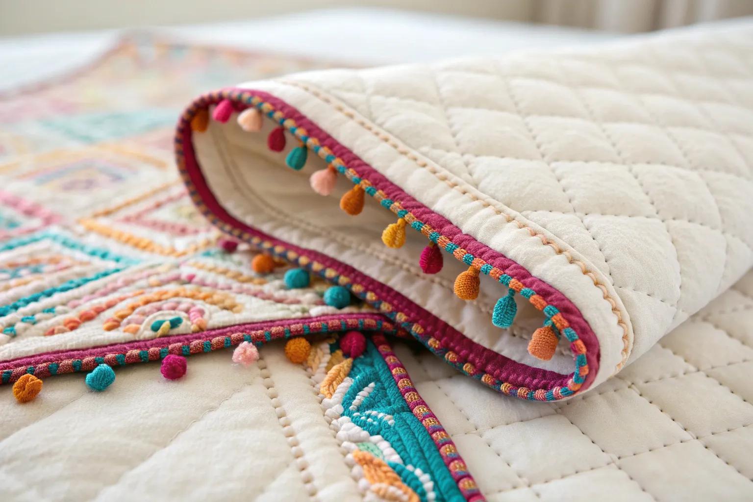 Add a touch of fancy with decorative machine stitching along the edge of your quilt. Choose a contrasting thread to make those stitches pop, turning the binding into a statement piece itself.