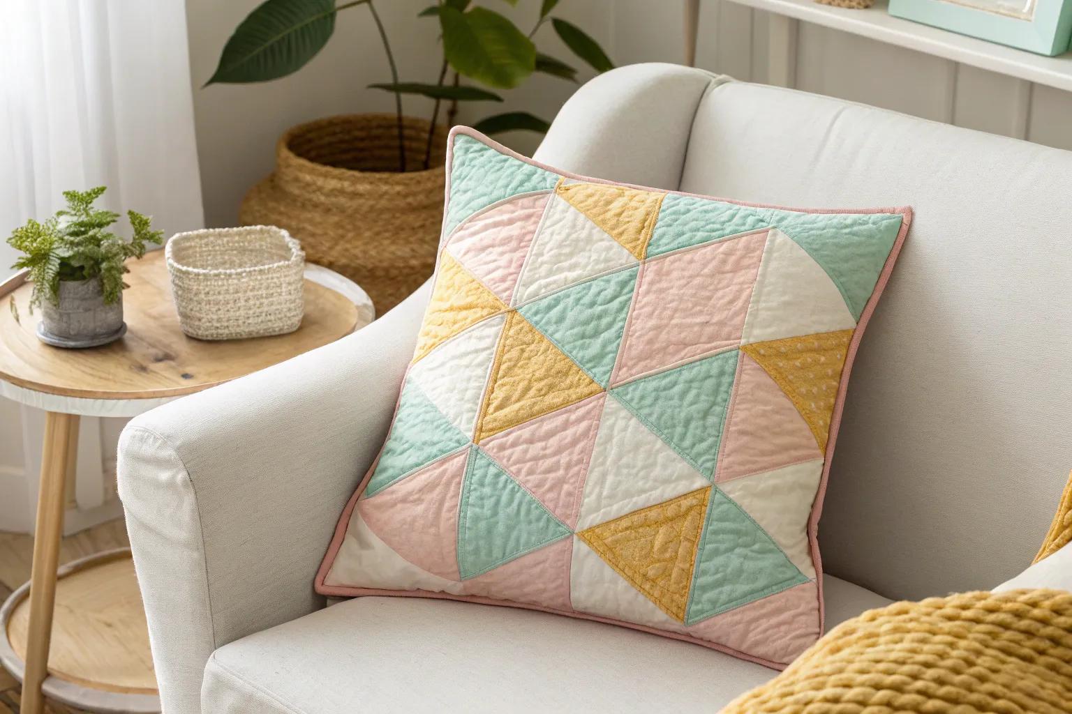 Add a touch of geometric elegance to your space with this handcrafted quilted pillow design.