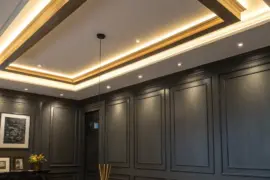 - Ceiling Molding with Gold Finish: Enhance your recessed ceiling’s perimeter with gold-finished molding, providing an elaborate and sophisticated edge.
