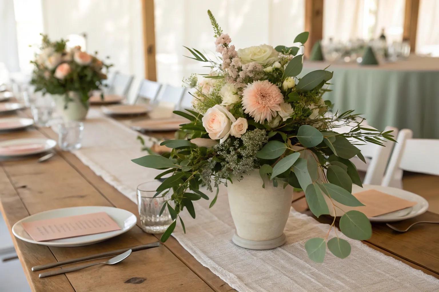 Incorporate eucalyptus into your centerpieces for a fresh, aromatic vibe. Its silvery-green leaves complement any floral arrangement beautifully.