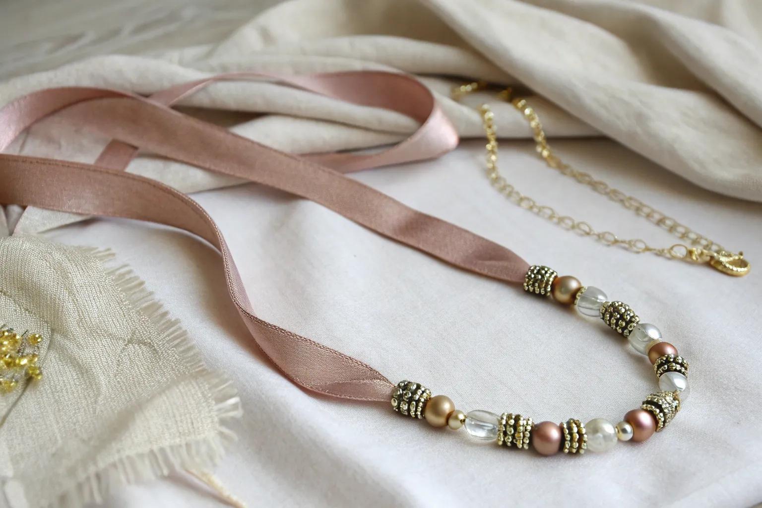 Pairing ribbon with neutral beads creates a timeless piece that can match any outfit and is a great starting point for more cute beaded necklace ideas. I once made one for a friend’s wedding, and it became the talk of the evening!