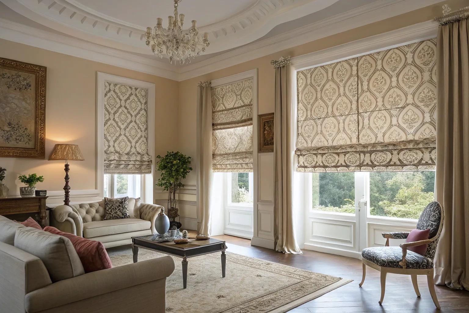 Bring vintage charm to your space with Roman shades in retro patterns. They add a nostalgic touch that’s both unique and stylish.