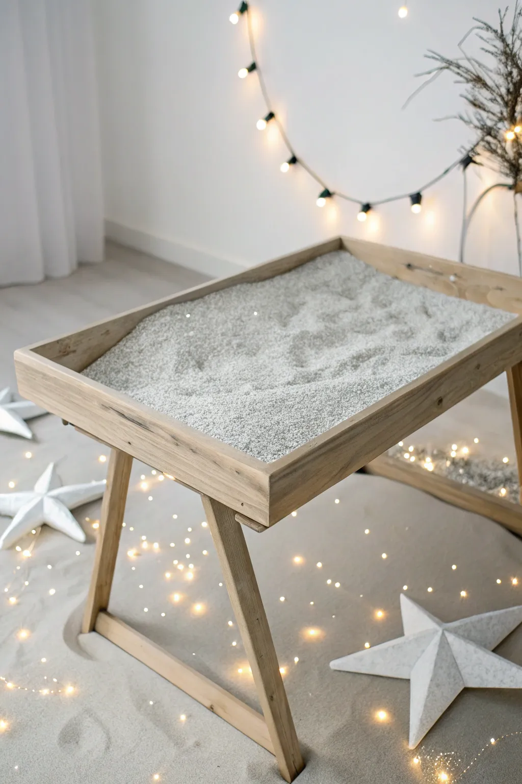 Create a cosmic adventure with silver sand and glow-in-the-dark stars. I love watching the table light up at night.