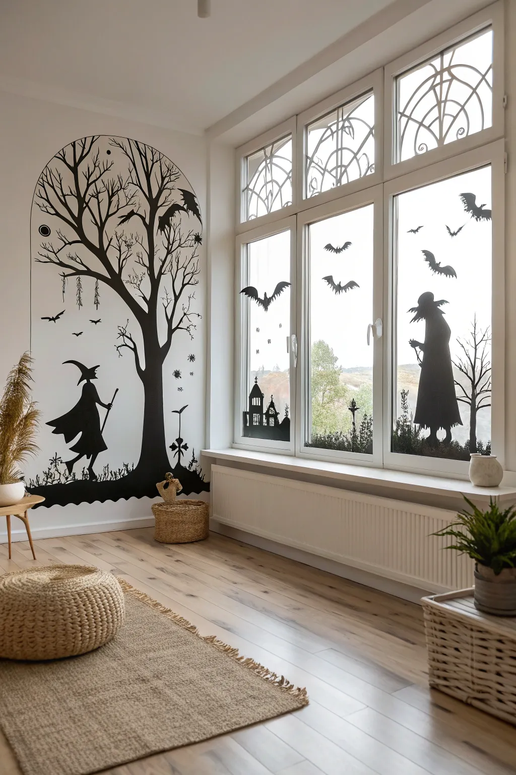 Craft your own spooky ambiance with elegant window silhouettes for a touch of Halloween charm.
