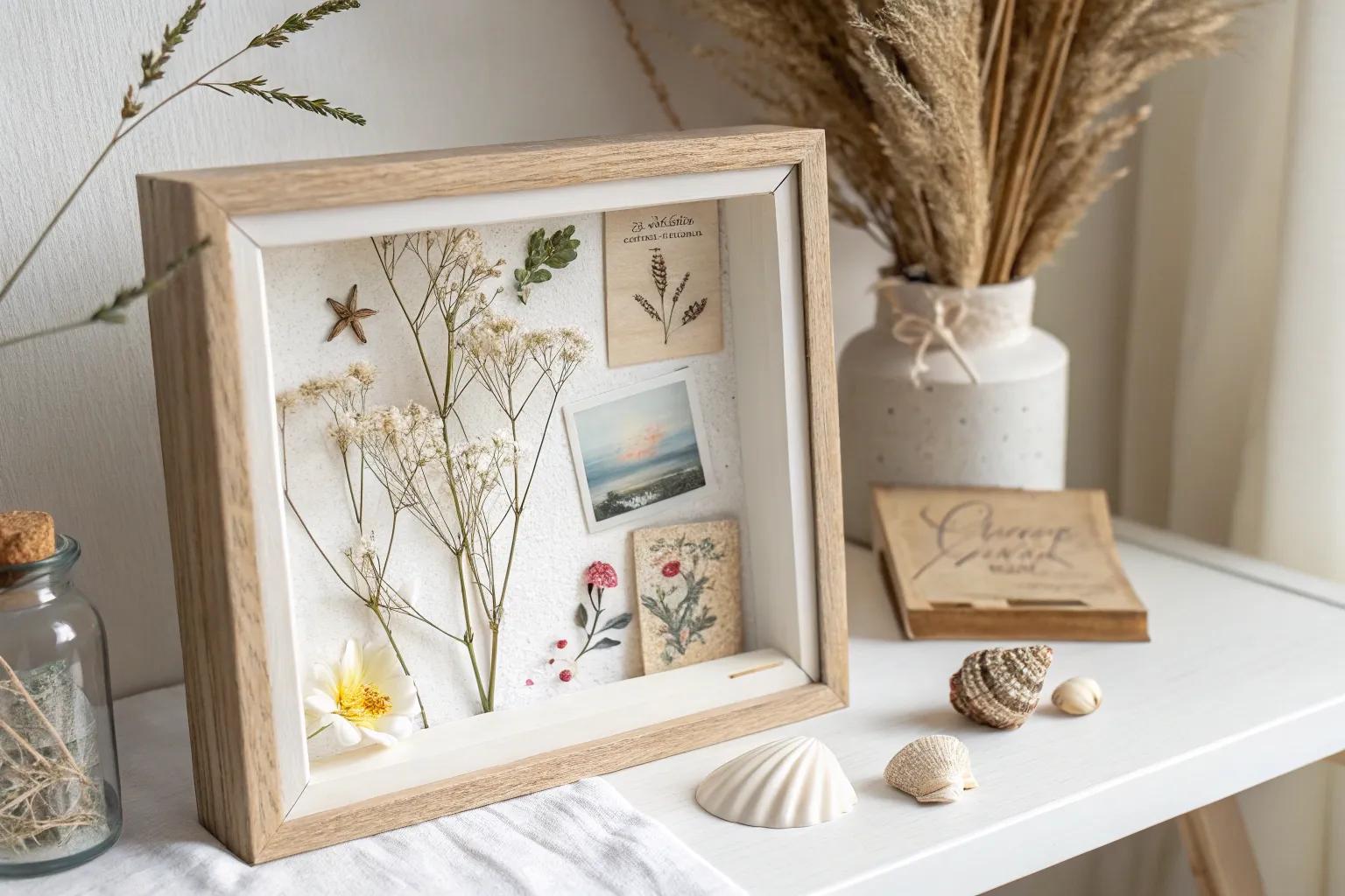 For the green thumbs, fill a shadow box with mini gardening tools and dried flowers. I crafted one for my mom, and she loved how it celebrated her passion for plants.