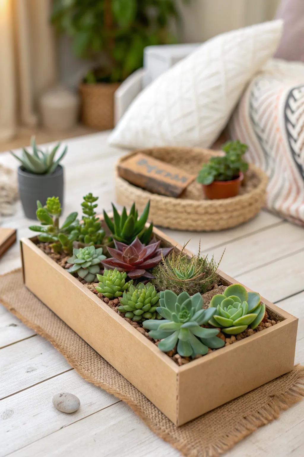 Start a mini shoebox garden with succulents or herbs for a touch of greenery. It’s a simple yet rewarding way to bring life into any small space.