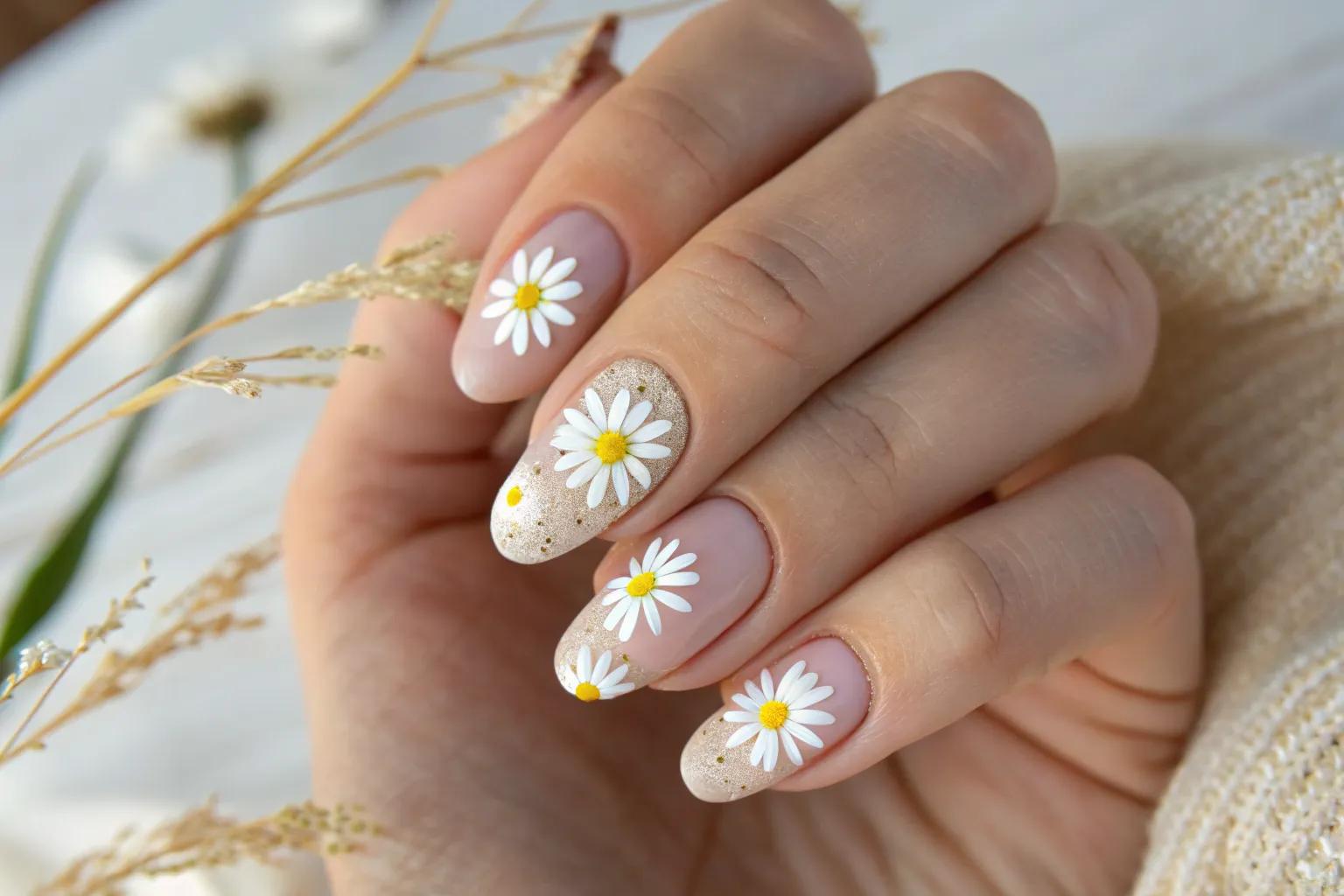 - Glitter Nail Polish: Add a touch of glamour to your daisy nails with sparkling glitter nail polish for parties.