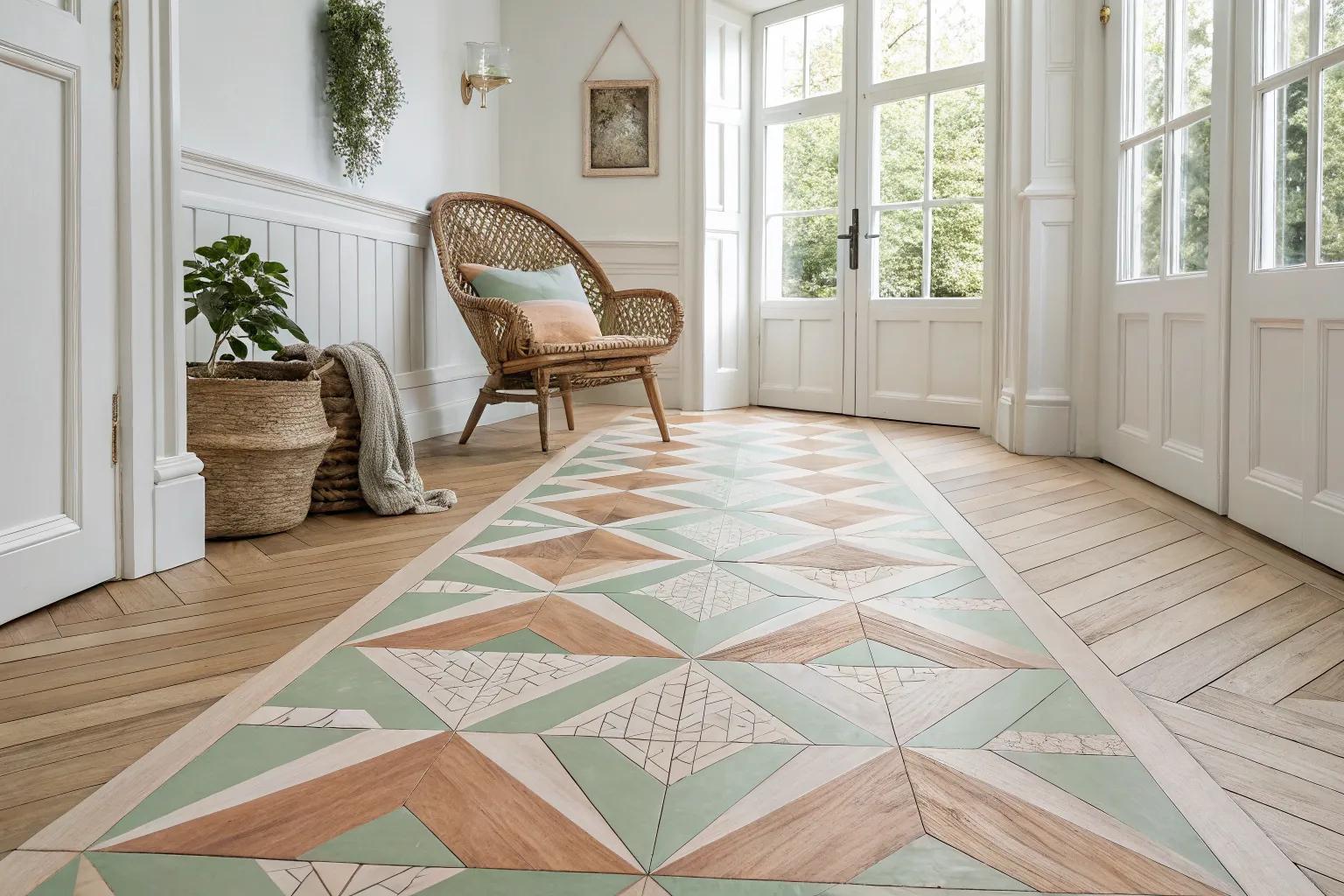 - Geometric Patterned Stencils: Transform your floor with ease using geometric stencils for a chic and functional design.