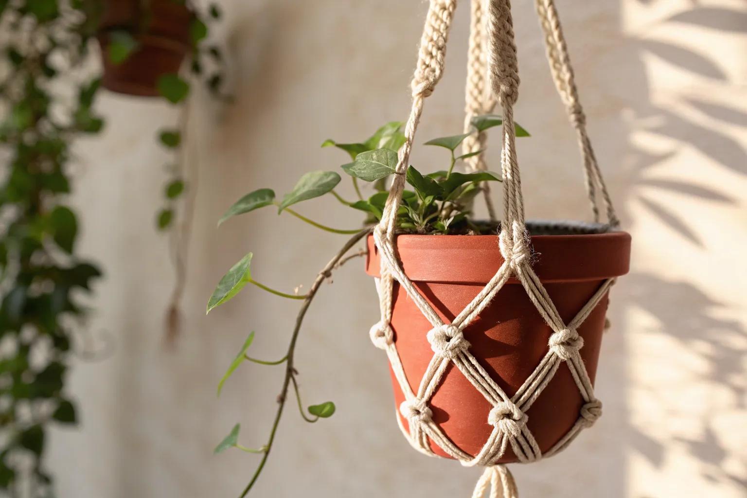 - Macrame Plant Hanger: Elevate your space with stylish macrame hangers, adding elegance and support to your hanging garden.