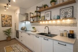 Incorporate reflective surfaces like glossy tiles or metallic accents to bounce light around the room. This trick can make even the smallest kitchen feel expansive.