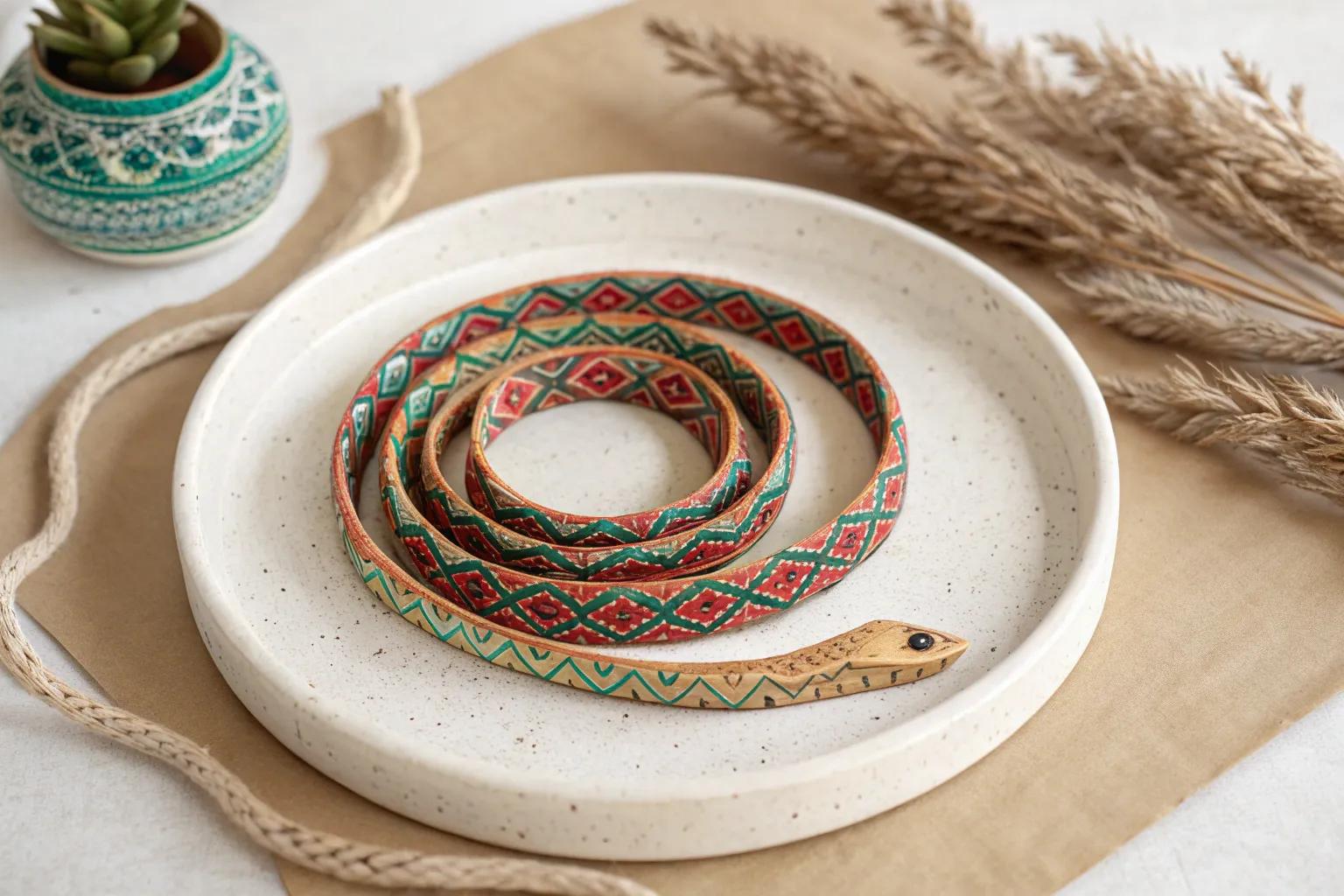 Embrace the charm of simplicity with a hand-painted paper snake, where minimalist design meets boho artistry.