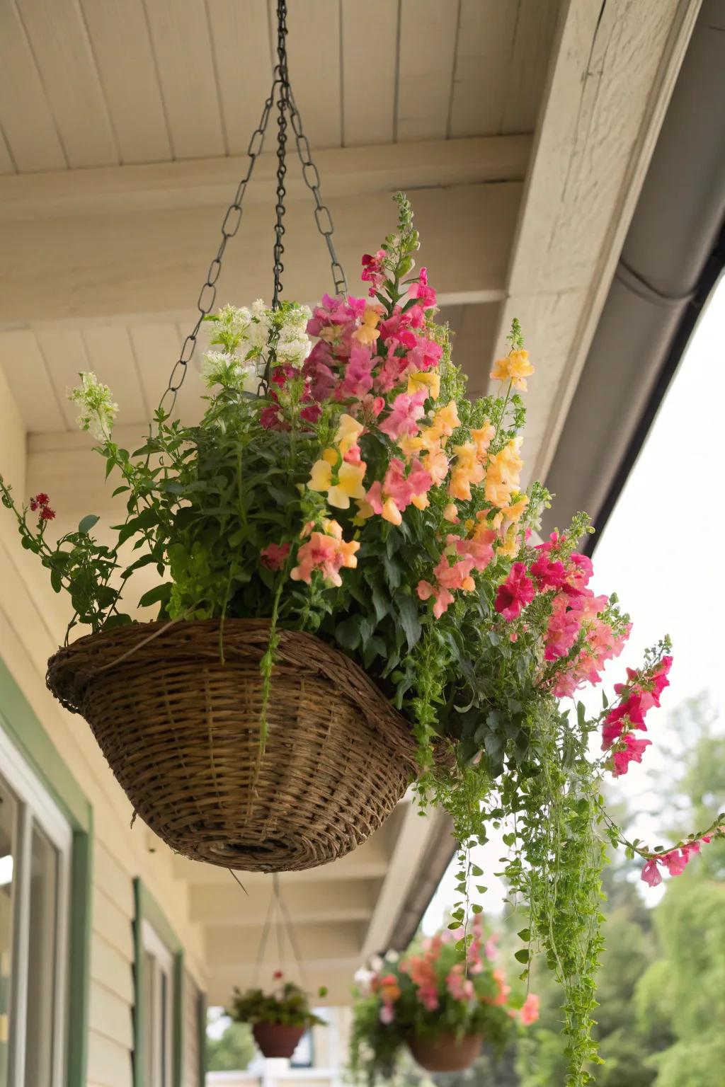 Plant snapdragons in hanging baskets to add color to porches and balconies. In a similar creative vein, explore these charming crochet animal ideas. Their trailing varieties create a cascading waterfall of blooms.