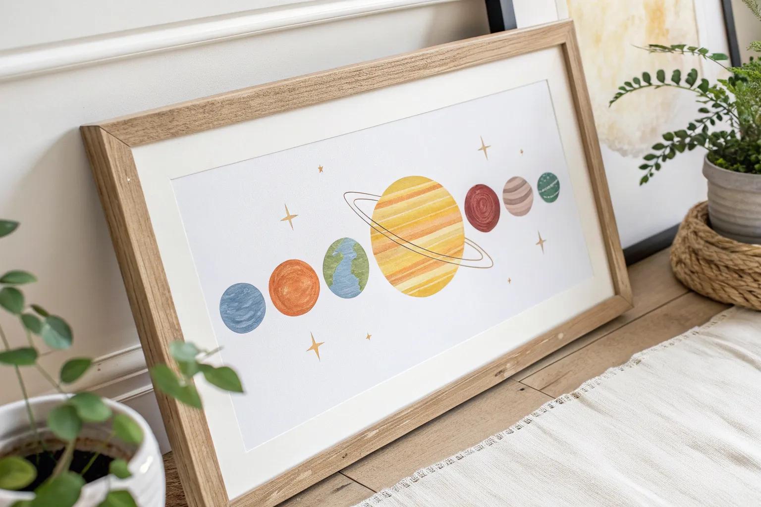 Explore the cosmos with this minimalist solar system painting, blending art and education beautifully.