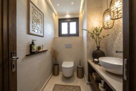 Infuse your bathroom with elements from your surrounding environment. Natural materials inspired by local landscapes create a soothing atmosphere. Personally, I love how this approach makes each space unique and connected to its surroundings, and you can find more creative inspiration with these fun bathroom ideas.