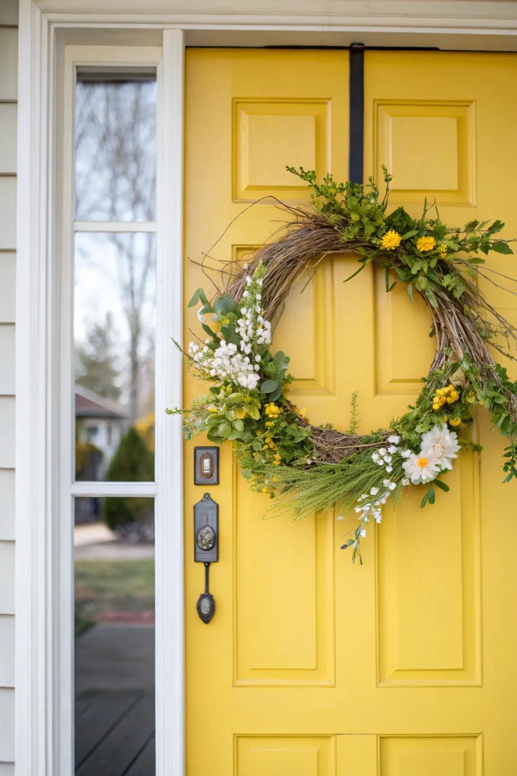 - Decorative Spring Wreath with Mixed Greenery: A beautiful wreath adorned with fresh greenery and colorful accents to add charm to your front door.