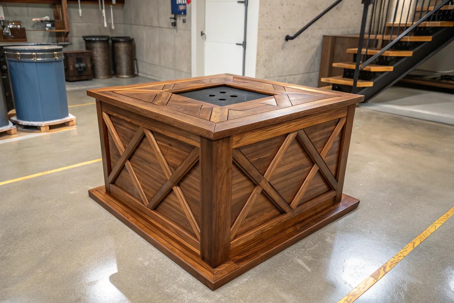 - Rustic Wood Ottoman with Storage: Add a rustic touch and conceal sump pump with this functional storage ottoman.