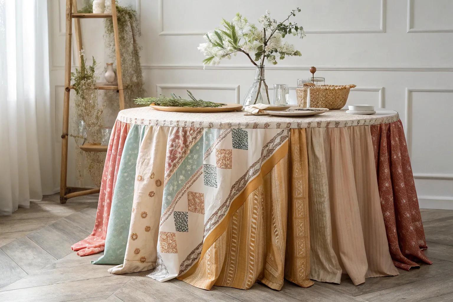 Layering fabrics of different lengths and patterns creates depth. I experimented with this by mixing stripes and florals, and the result was wonderfully eclectic. This is just one of many DIY table cover ideas you can try.