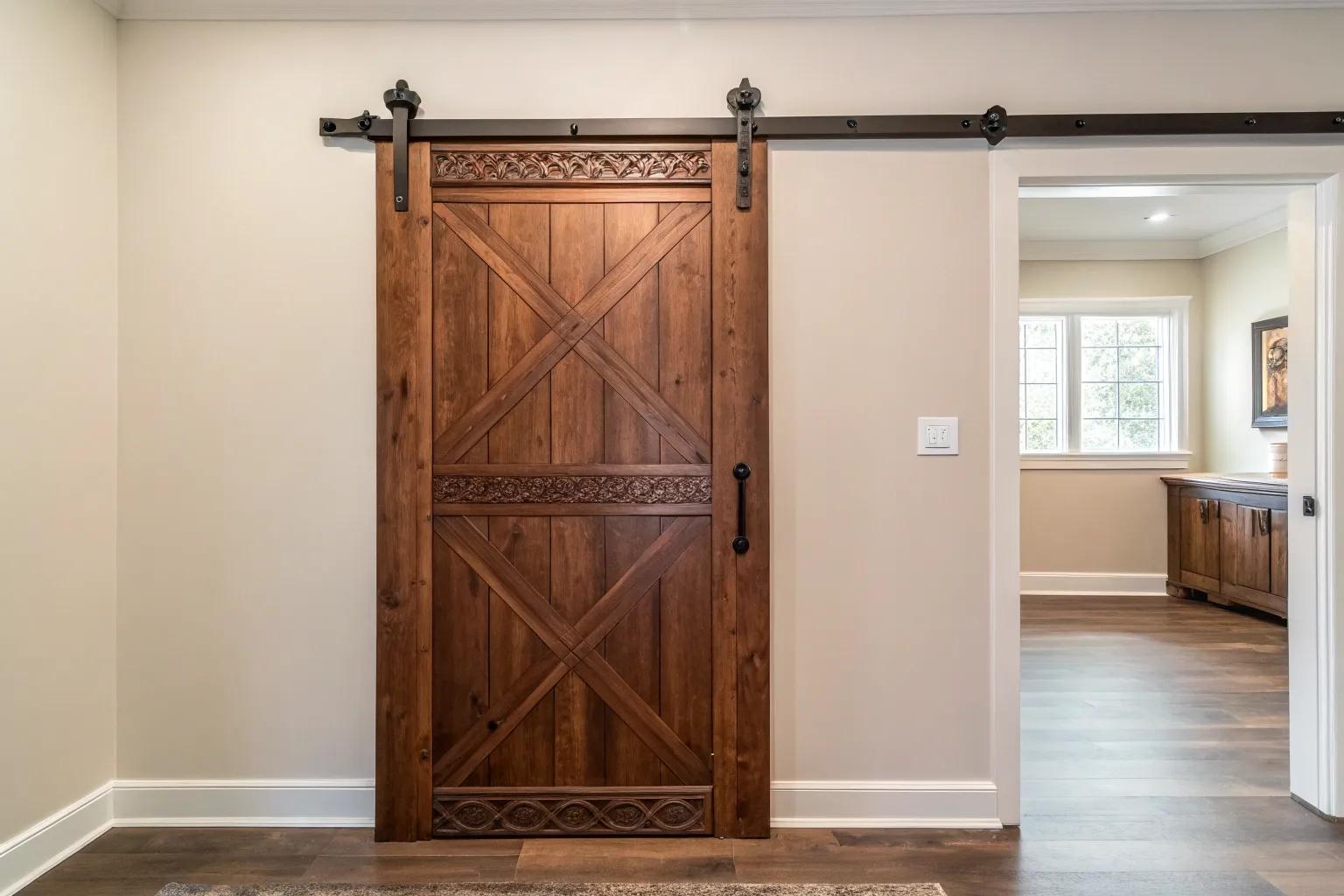 • Reclaimed Wood Planks: Craft a unique barn door with character-rich reclaimed wood for a rustic, trendy look.