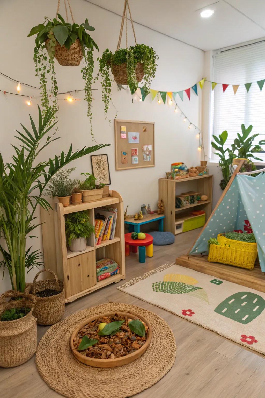 Set up a nature corner with plants and natural elements. It’s a wonderful way to introduce your toddler to the beauty of nature.