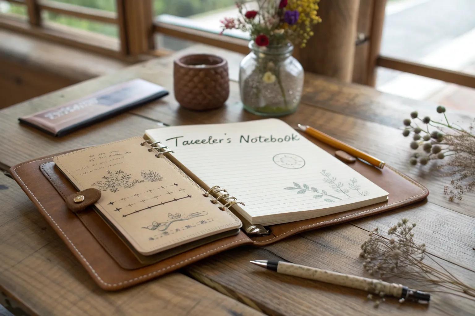 • Leather Traveler’s Notebook: Enhance your journaling experience with a timeless leather notebook for capturing inspiration on the go.