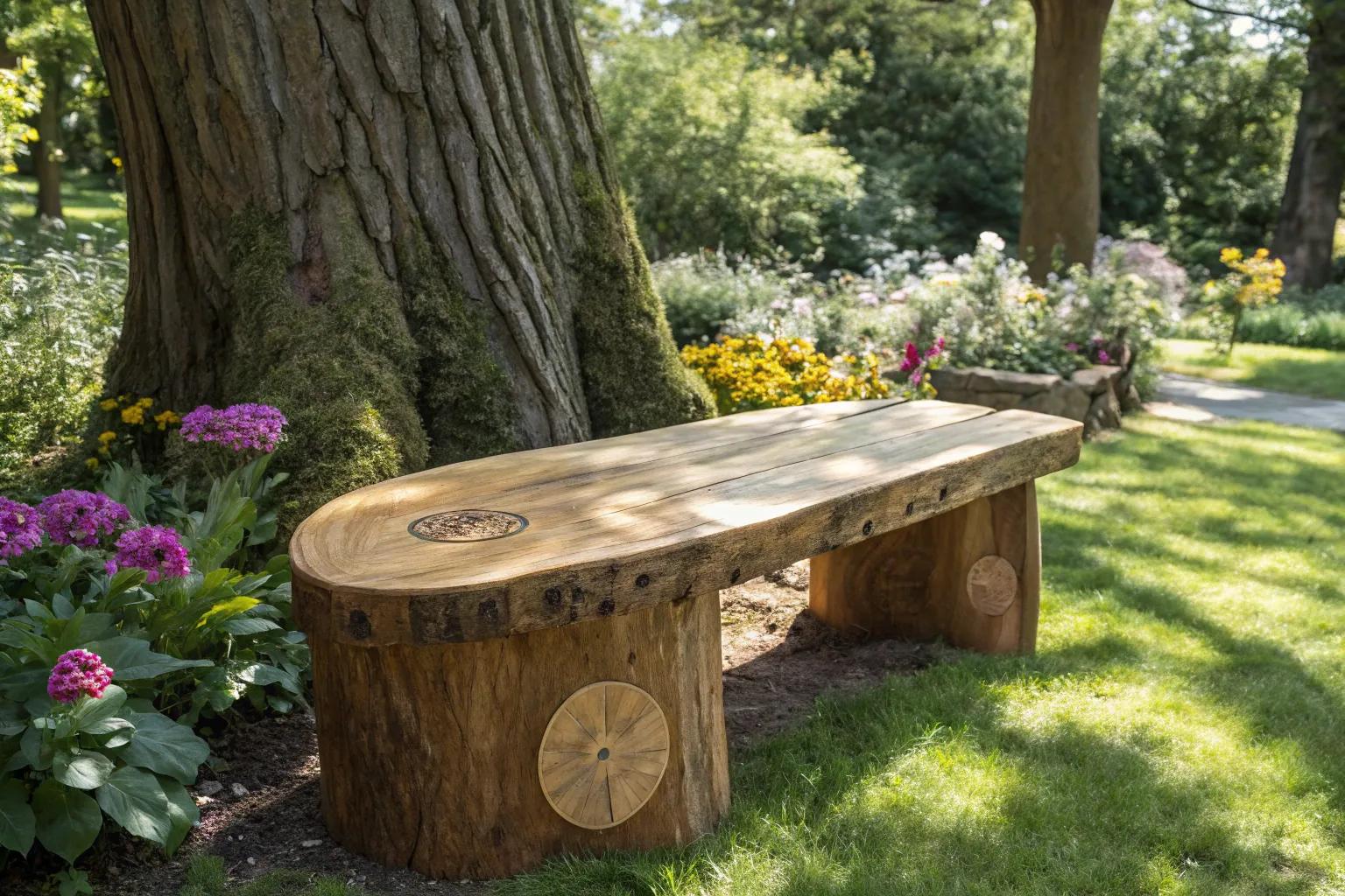 Use a stump as a side table for your garden chairs. To complete the rustic look, consider these matching tree stump chair ideas. Add a glass top for a modern touch; it’s a simple way to add functionality without losing that rustic charm.