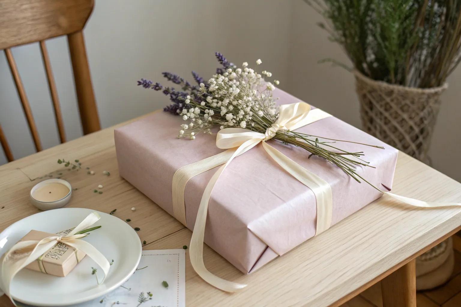 Tape a pressed flower onto the wrapping for a delicate, vintage vibe. It’s a simple yet beautiful way to show you care.