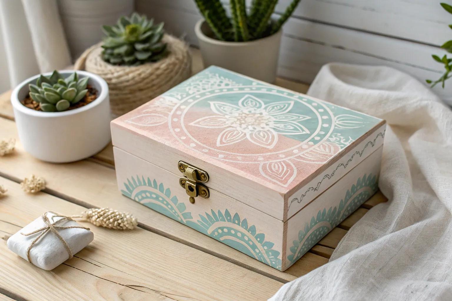 Bring a bit of the outside in by decorating your box with floral motifs or adding small faux succulents on top. Explore other nature-inspired jewelry box ideas for more inspiration. I once added pressed flowers for a delicate, nature-inspired touch.