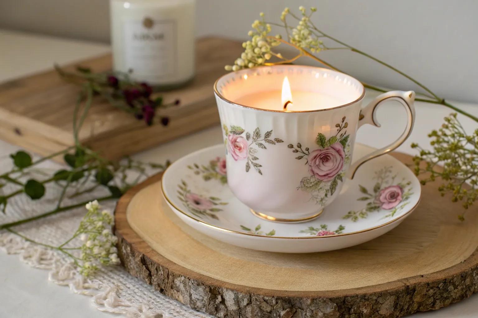 Pour melted wax into teacups to create elegant candles that glow warmly on any table. These make thoughtful DIY gifts for tea lovers, and you can add your favorite scents for a personalized touch that smells as good as it looks.