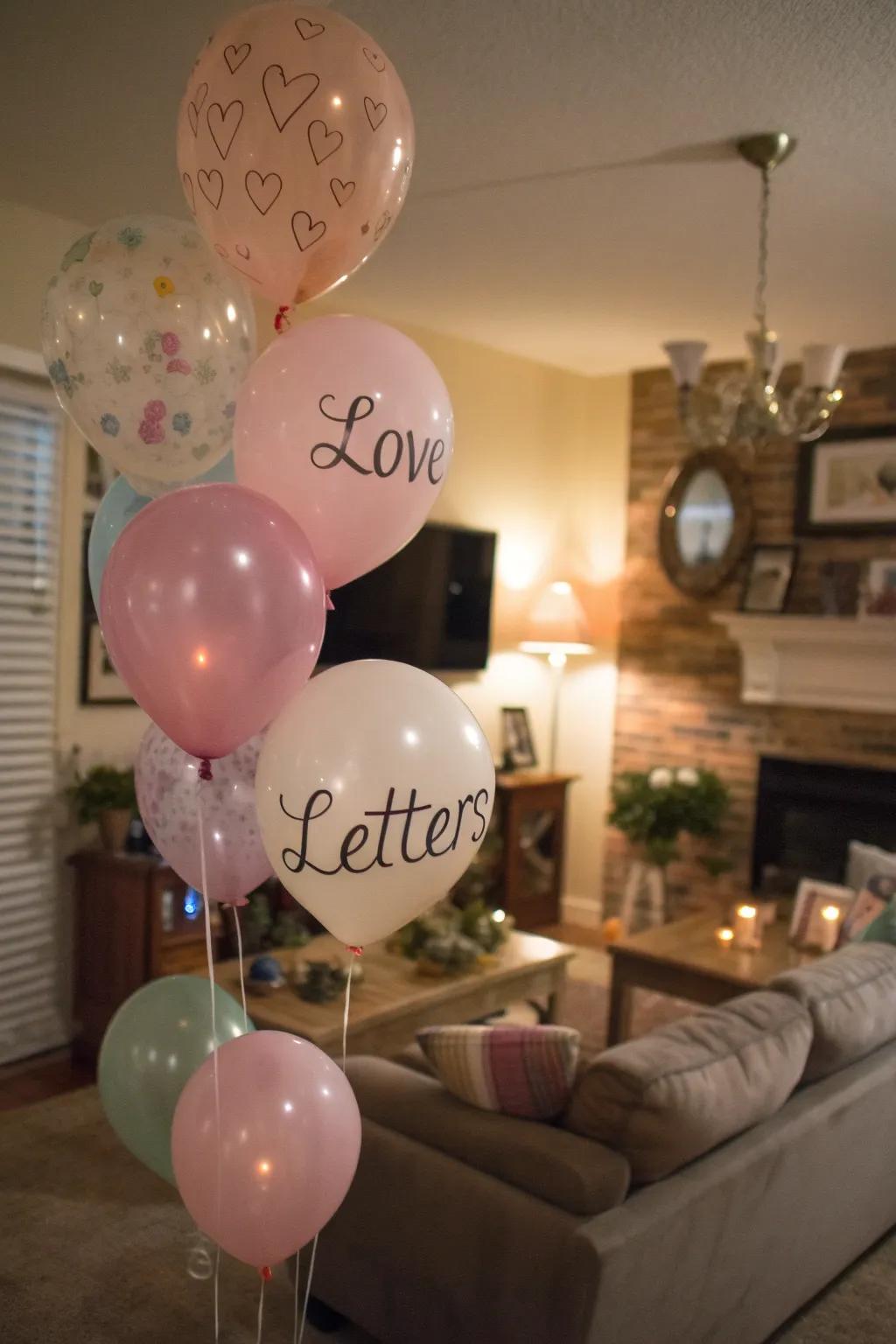 Write love letters on balloons and let them float around the room. This unique homemade Valentine’s idea combines decor with personal expression, adding a heartfelt touch.