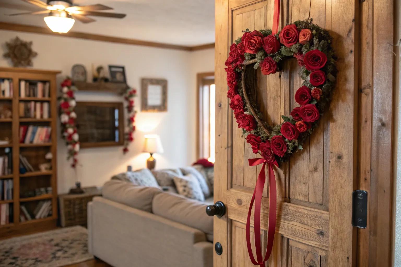 Similar to other charming heart wreath ideas, you can craft a romantic vibe with a heart-shaped grapevine wreath adorned with faux flowers and a dainty pink bow. I love how this classic look effortlessly blends elegance with rustic charm.