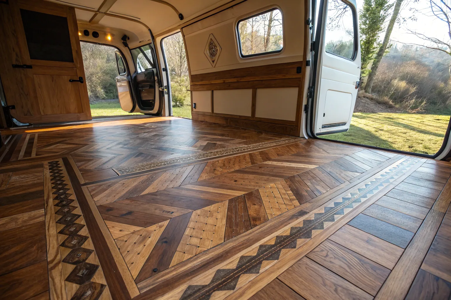 For an edgy, industrial look, consider metal flooring. A friend of mine used it in his van, and it felt like stepping into a sleek, modern loft.