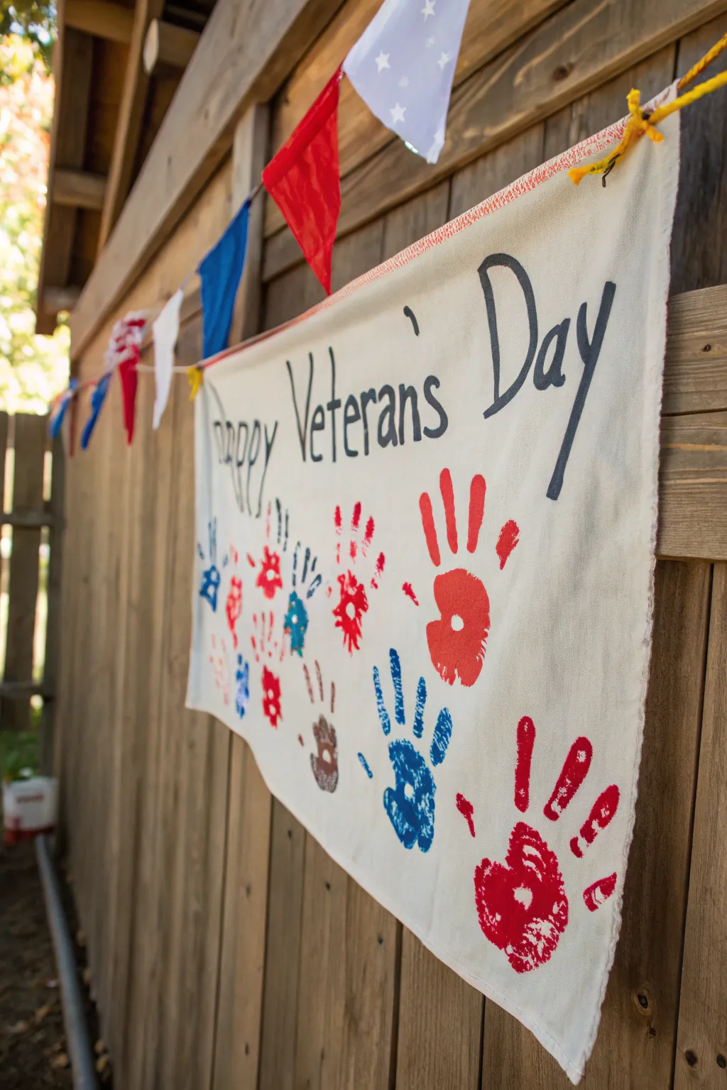 Celebrate Veterans Day with a personal touch: a handcrafted banner featuring family handprints.