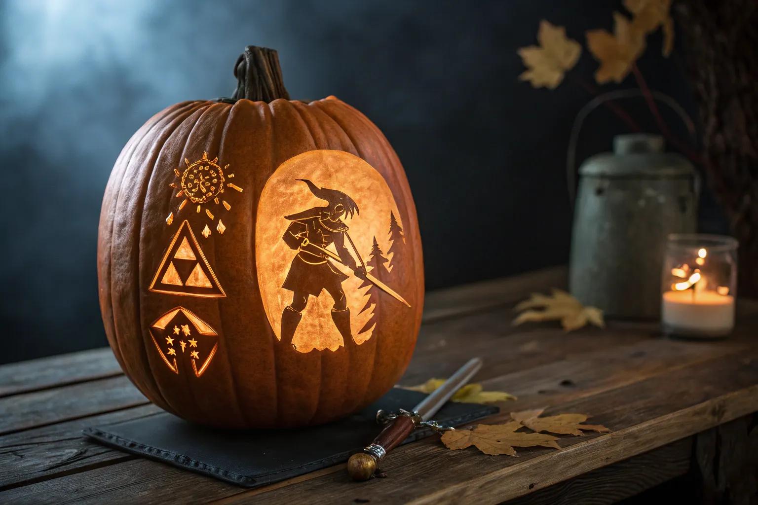 Add a bit of mystery with the Triforce emblem from Legend of Zelda. This symbol is easy to carve yet instantly recognizable, making it one of many great little pumpkin carving ideas for any Zelda fan.