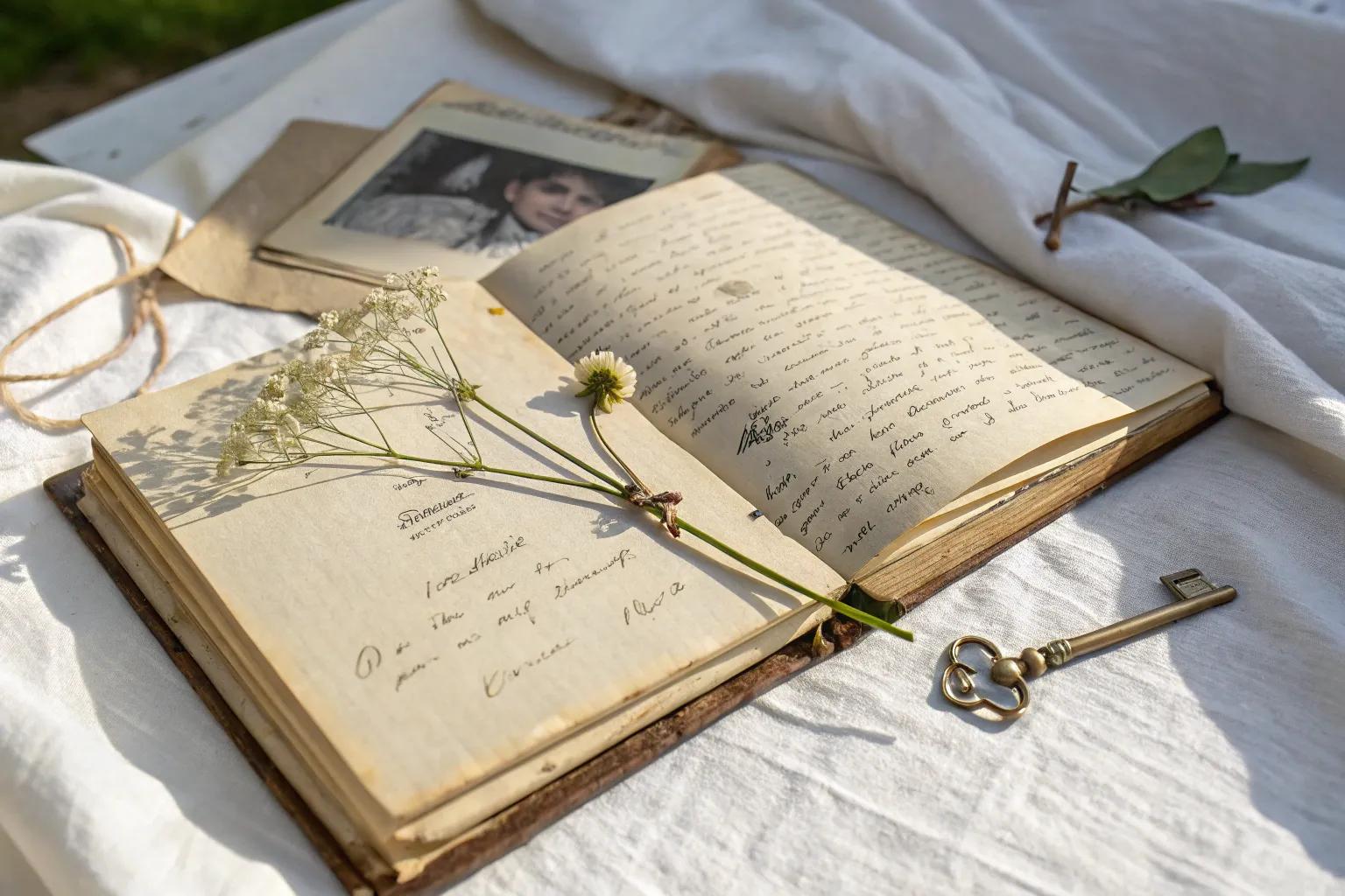 Include handwritten notes to add a personal touch to your journal pages. This technique is central to many charming vintage diary ideas. My favorite part is scribbling little thoughts in cursive script throughout the pages.