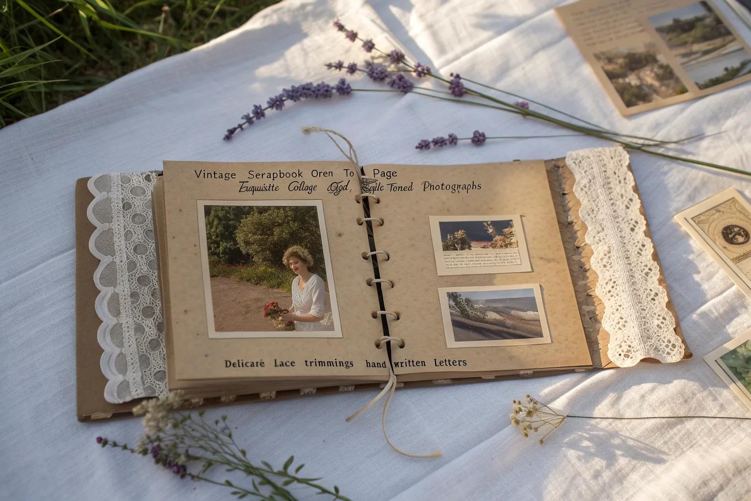 - Vintage Scrapbook Album: Create stunning memory keepsakes with a vintage scrapbook album in earthy, neutral tones.