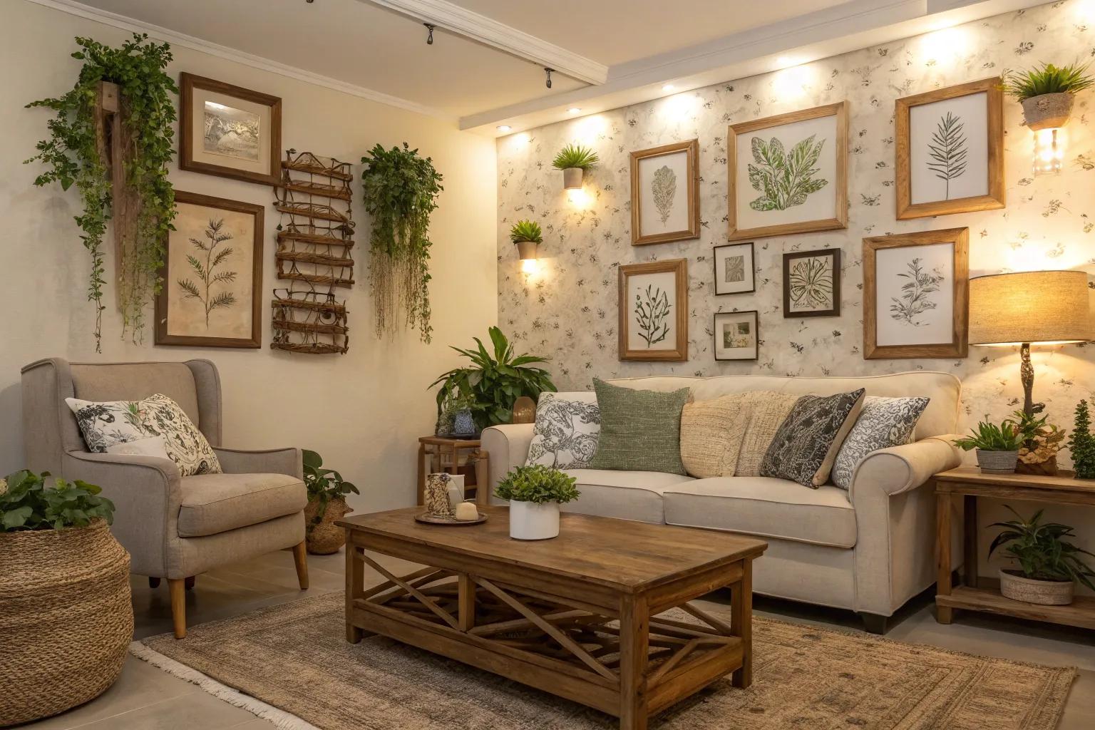 Incorporate natural elements by using nature-themed art or real plants on your walls. It’s a simple way to add freshness and vitality to any room.