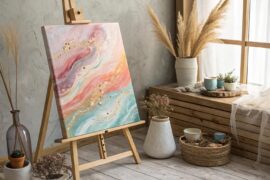 The wet-on-wet technique is your go-to for dreamy, ethereal backgrounds. Apply paint to a damp surface and watch as the colors melt into one another. This technique is perfect for a tranquil corner of your home where relaxation is key.