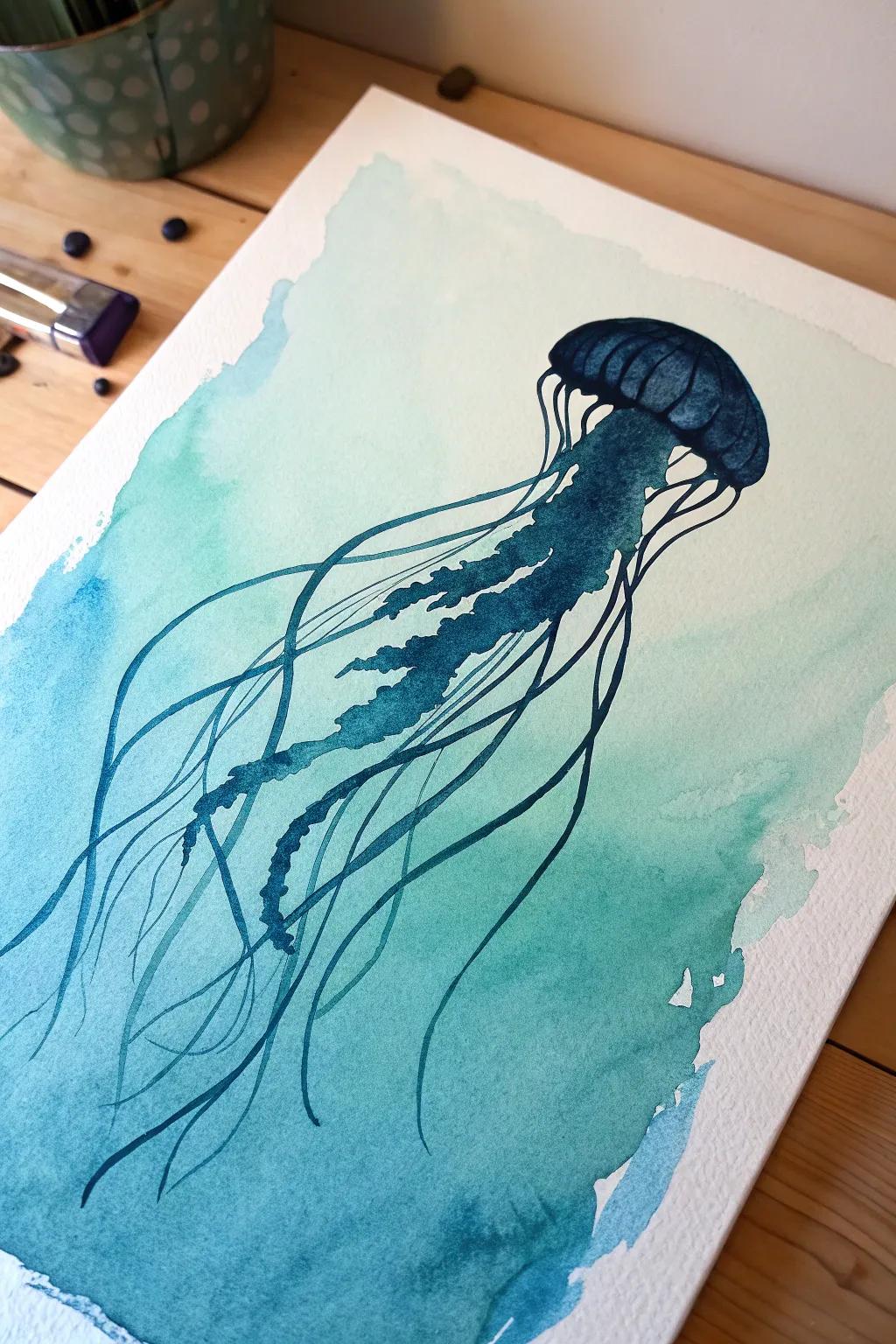 Dive into the deep with silhouettes of sea creatures against a teal and blue wash. For more inspiration, explore these cool watercolor ideas. It’s a refreshing and unexpected addition to any decor.