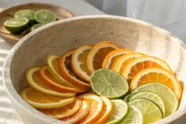 Combine sliced citrus with tea light candles in glass holders for a fresh and aromatic centerpiece. I love how the candlelight dances off the citrus surfaces, creating a warm, inviting glow.