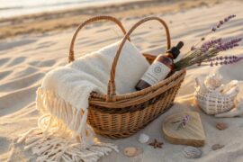 Kraft paper bags can be dressed up with colorful ribbons and personalized stamps. They have an earthy, elegant charm that’s hard to beat and work well for many DIY wedding gift basket ideas.