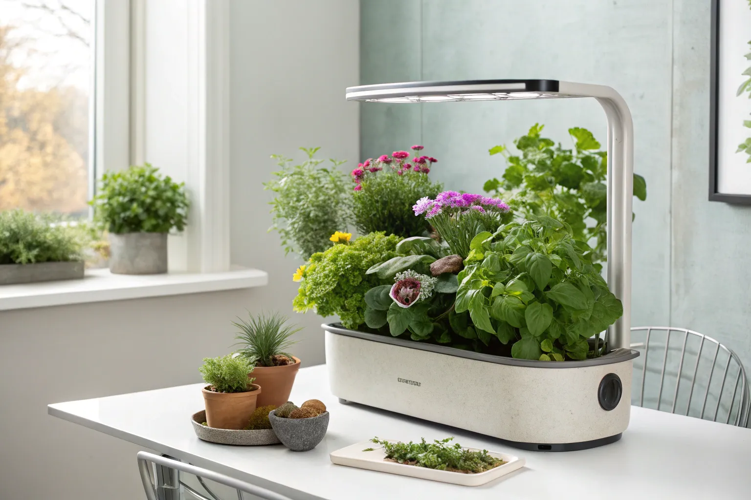 Elevate your kitchen with a touch of greenery and flavor—cilantro thriving beautifully in a minimalist Aerogarden.