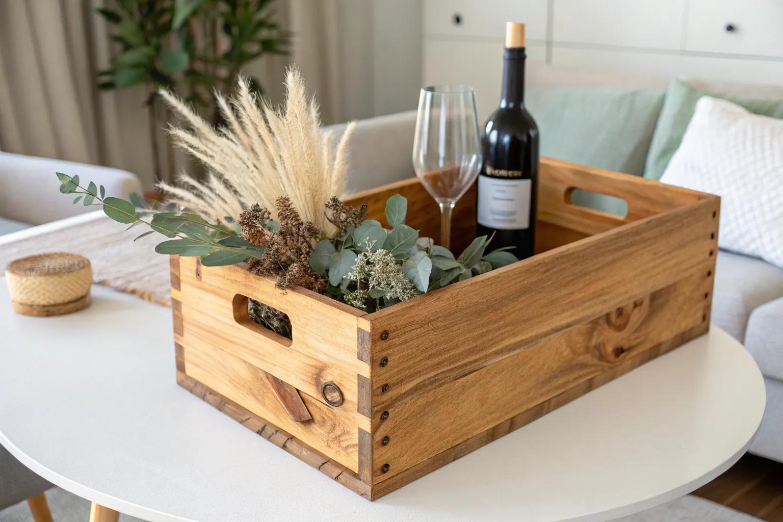 • Rustic Wooden Wine Box: Stack these charming boxes to create a unique display for your books and décor pieces.