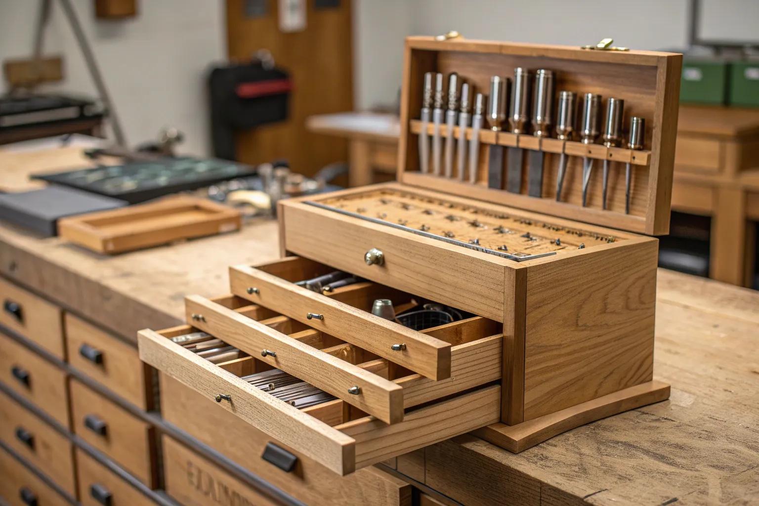 • Wood Drawer Organizers: Add elegance and efficiency with wooden organizers. Perfect for tidy tool storage.